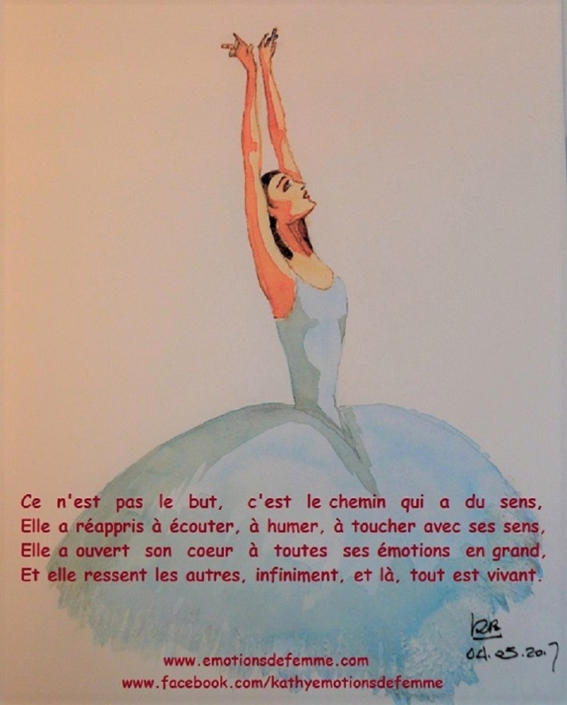 C’est une longue absence mais je ne vous oublie pas. J’ai ce besoin de revenir en moi, pour moi, sans contraintes ni culpabilité. Je me confine dans le confinement. J’essaie de revenir à l’essentiel, l’essentiel du corps qui ressent, qui bouge, qui respire. Je suis l’enfant qui apprends à vivre, à découvrir les trésors infinis qui sont en lui et les montagnes immaculées qu’il lui faudra gravir. J’en perds les mots et l’esprit, il ne reste que le ressenti. Parfois encore douloureux. Il est nécessaire de laisser Être la douleur de la petite fille abusée et meurtrie, de la femme abasourdie. Et même si elle est féroce, toutes griffes dehors, je la laisse se manifester, me traverser pour qu’elle rapetisse et s’évanouisse. Je refuse qu’elle reste tapie en mon ventre à vie. Je suis dans le présent, dans chaque bourgeon qui éclot au creux du jardin, dans chaque respiration bleutée du ciel, dans chaque son qui palpite et frémit, dans chaque larme étonnée qui jaillit, dans mon cœur qui, comme un tambour, sonne, résonne, puis murmure « Aime toi enfin ». Et dans cet espace, tout va bien.