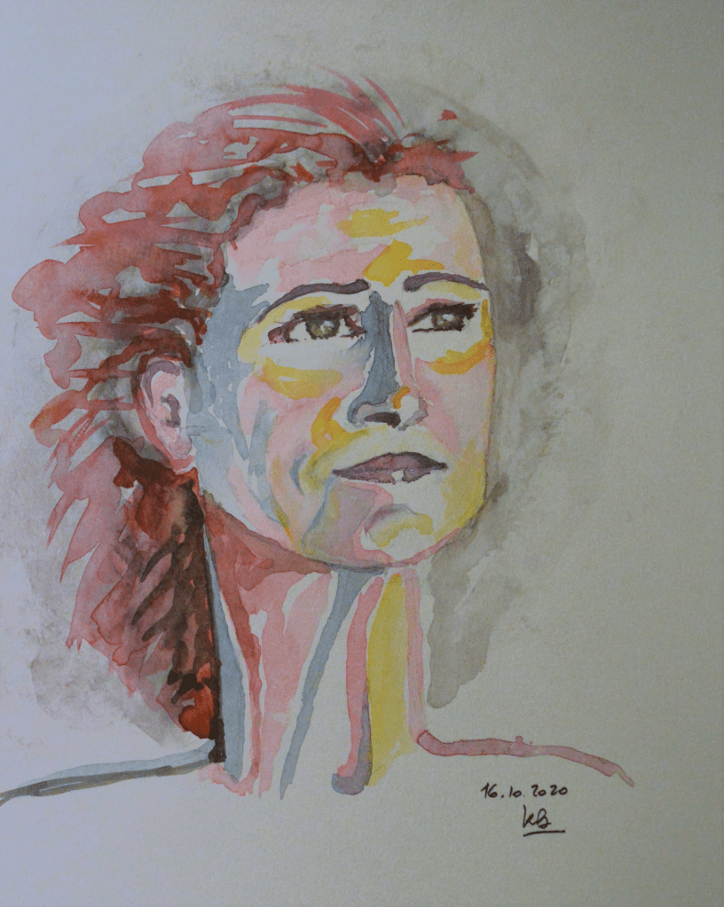 Voici le portrait de ma sœur, car oui, je continue à peindre même si je publie moins !